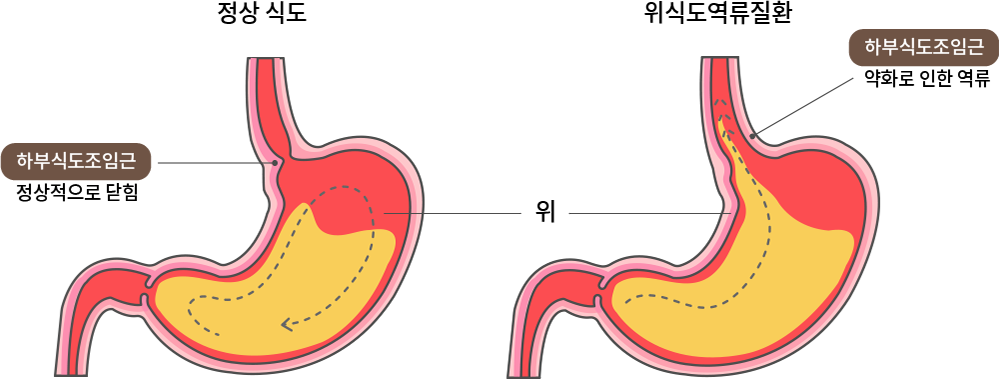 위 내용물이 식도로 밀려 올라가기 쉬운 환경이 만들어집니다.